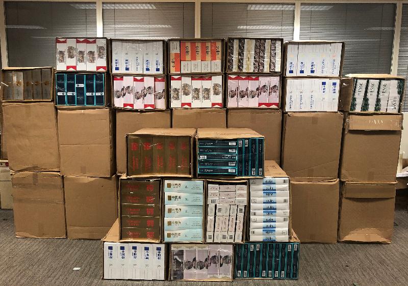 海關人員昨日進行反私煙行動,在葵涌一個物流場查驗一批貨物,檢獲該批懷疑私煙,並拘捕兩名四十六歲男子。