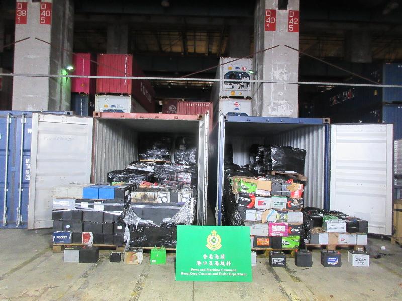 香港海關與環境保護署(環保署)六月十三日進行聯合執法行動,在葵涌貨櫃碼頭檢獲約五十公噸懷疑非法出口廢鉛酸電池,估計市值約五十萬元。