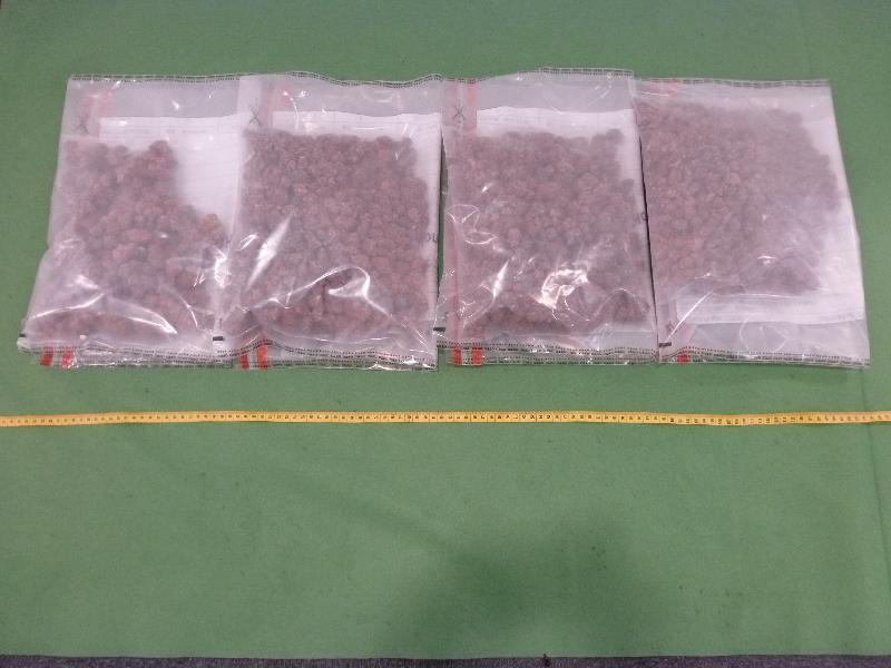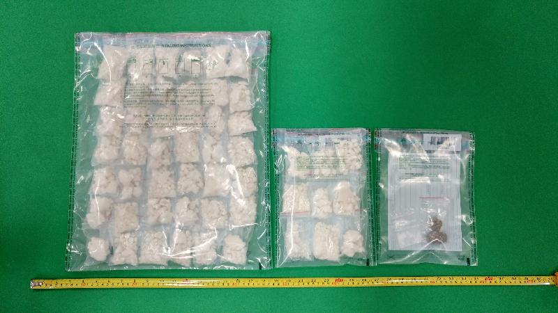 香港海關於昨日(十月三日)在錦田檢獲合共約一點四公斤懷疑霹靂可卡因、小量懷疑大麻花及懷疑氯胺酮,估計市值約一百八十萬元。