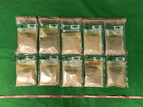 海關人員七月二十四日檢查一件從馬來西亞到港的空運速遞快件時,發現該批懷疑毒品收藏在咖喱粉包裝袋內。