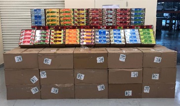 海關人員透過風險評估,檢查一批從阿拉伯聯合酋長國經新加坡抵港,報稱載有糖漿的空運貨物。經檢查後,海關人員在一百個紙箱內發現該批懷疑未完稅水煙。