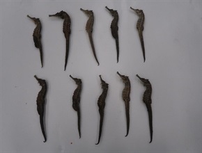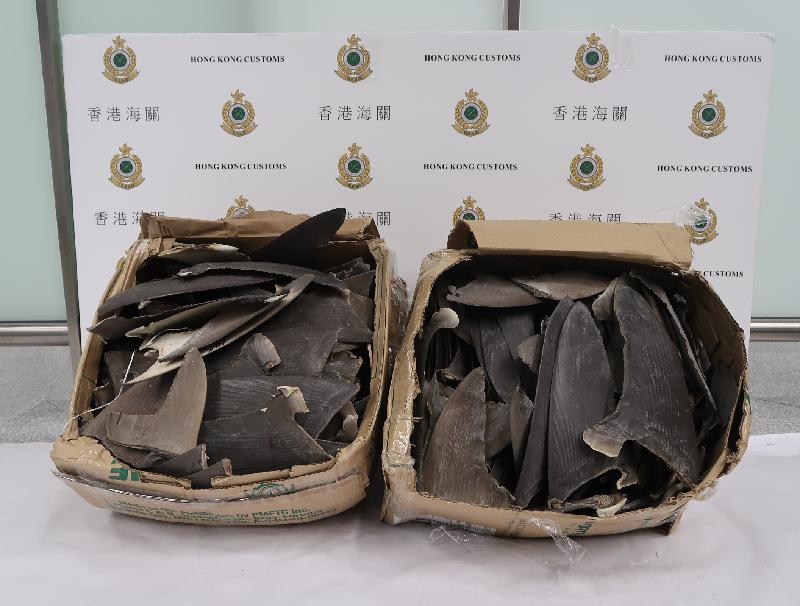 香港海關昨日(八月二十三日)在香港國際機場檢獲約一百八十公斤懷疑受管制乾魚翅及五百克懷疑受管制乾海馬,估計市值約五萬元。