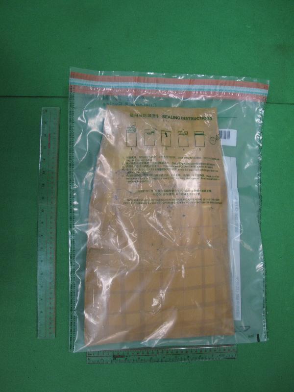 一名女旅客昨日下午從埃塞俄比亞飛抵本港。海關人員檢查該名旅客的手提背囊時,在背囊的暗格內發現該批懷疑可卡因,於是將她拘捕。