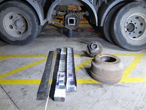 海關人員於十一月二十六日下午截查一輛出境的貨櫃拖頭連40呎拖架及40呎貨櫃。於移除拖架的車輪後,在拖架3條已改裝的車底軸內檢獲912部走私電話。