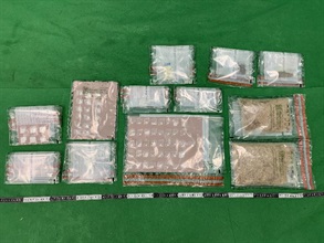 香港海關九月十六日及今日(九月二十八日)分別在香港國際機場、觀塘及油塘檢獲一批共約一點一公斤懷疑毒品,估計市值約四十萬元。