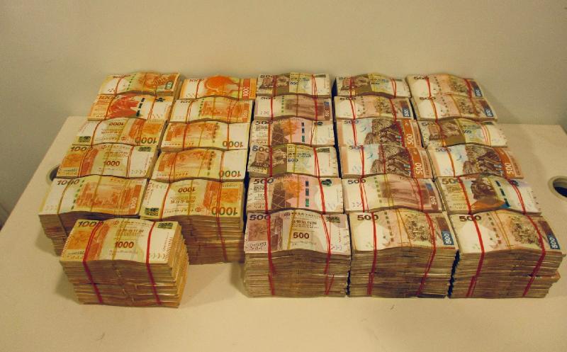 今年五月,海關人員鎖定一個懷疑清洗黑錢集團並展開財富調查。經過多月深入調查,海關於八月十九日至二十三日出動超過四十名人員,突擊搜查三個位於新界的住宅單位及一間位於觀塘的持牌找換店,並以涉嫌串謀「處理已知道或相信為代表從可公訴罪行的得益的財產」(俗稱洗黑錢)罪名及違反《實體貨幣及不記名可轉讓票據跨境流動條例》罪名拘捕五名懷疑涉案男子,年齡介乎四十至四十三歲,包括三名跨境車司機及兩名找換店負責人。