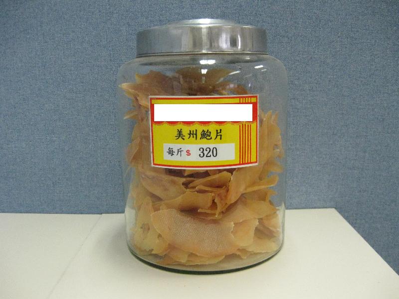 海關在接獲投訴後,於去年十二月在港九新界各區多間海味零售店試購鮑魚片。該等鮑魚片出售時分別聲稱為「鮑魚片」、「澳洲鮑魚片」、「日本鮑魚片」、「美州鮑魚片」及「南非鮑魚片」。海關將購得的31個「鮑魚片」樣本交予政府化驗所檢測。檢測結果顯示,全部樣本都是螺肉,並非鮑魚,有關零售商涉嫌違反《商品說明條例》。