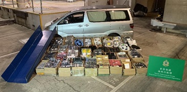 行動中,海關人員檢獲該批懷疑走私電子產品,包括電腦硬盤、USB外置記憶體及其他電子零件等,並扣查一輛涉案私家車。