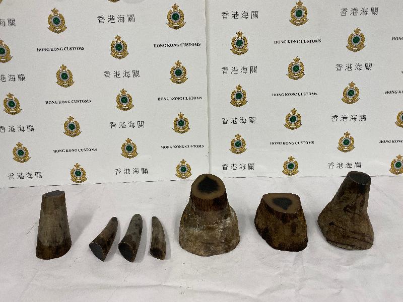 香港海關今日(十月十九日)在香港國際機場檢獲約十六公斤懷疑犀牛角,估計市值約三百二十萬元。