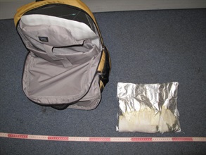 海關人員昨日傍晚在機場入境大堂截查該名來自吉隆坡的女子,在其背囊的夾層內搜出該批毒品。