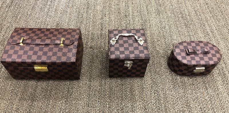 行動中,海關人員在兩個展銷攤位分別檢獲三個懷疑冒牌首飾盒及一個懷疑冒牌手提袋,並拘捕兩男一女,年齡介乎三十一至四十二歲。