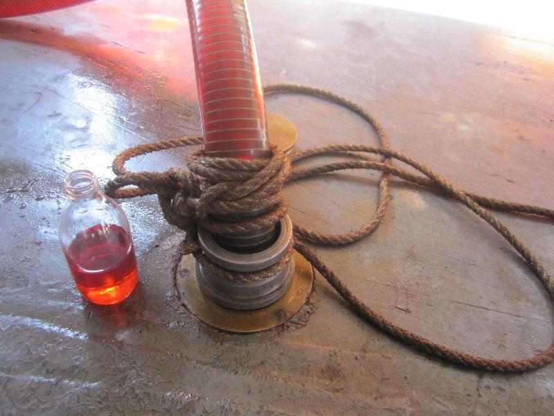 海關海域行動課人員在西邊水域執行反走私海上巡邏期間,截查一艘正駛往內地的香港漁船,在該船的油缸內搜獲約五萬公升紅油,由於船長未能出示有關貨物的出口載貨艙單,他與另一名船員被海關扣留調查。