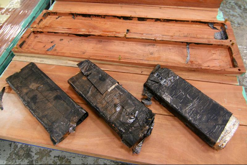 去年十二月二十九日,海關人員抽查一艘由南美洲智利抵港的貨櫃船上兩個報稱裝有「木製品」的貨櫃箱。經X光機和緝毒犬嗅查下,發現其中一個貨櫃箱內載有八十八條被挖空的木板,內藏該批可卡因。
