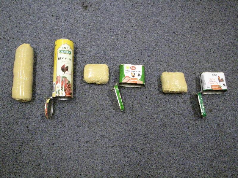 海關機場科人員昨日下午在機場轉機區域內截查該名來自孟加拉的女子,在其行李內搜出共重約一公斤海洛英。毒品分別藏在三罐罐頭食品內,意圖避過執法人員的搜查。案件及後交由毒品調查科人員跟進。
