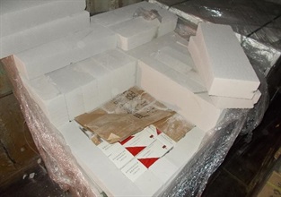 海關人員昨日在落馬洲管制站截查一輛報稱載有磚頭的入境貨車。經檢查後,海關人員發現該批懷疑私煙被磚頭圍封並放置在六塊卡板上。