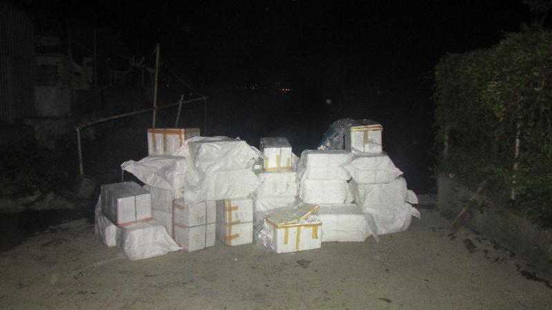 香港海關聯同水警今日(九月十一日)採取聯合海上行動,在流浮山灰業街岸邊破獲一宗快艇懷疑走私案件,檢獲四十箱涉嫌走私的急凍野味,包括穿山甲及果子狸,總值約一百四十萬元。