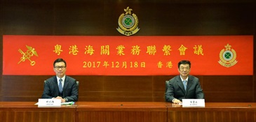 香港海關與廣東海關今日(十二月十八日)在香港舉行粵港海關業務聯繫會議。雙方代表團由香港海關關長鄧以海及國家海關總署廣東分署主任李書玉率領。