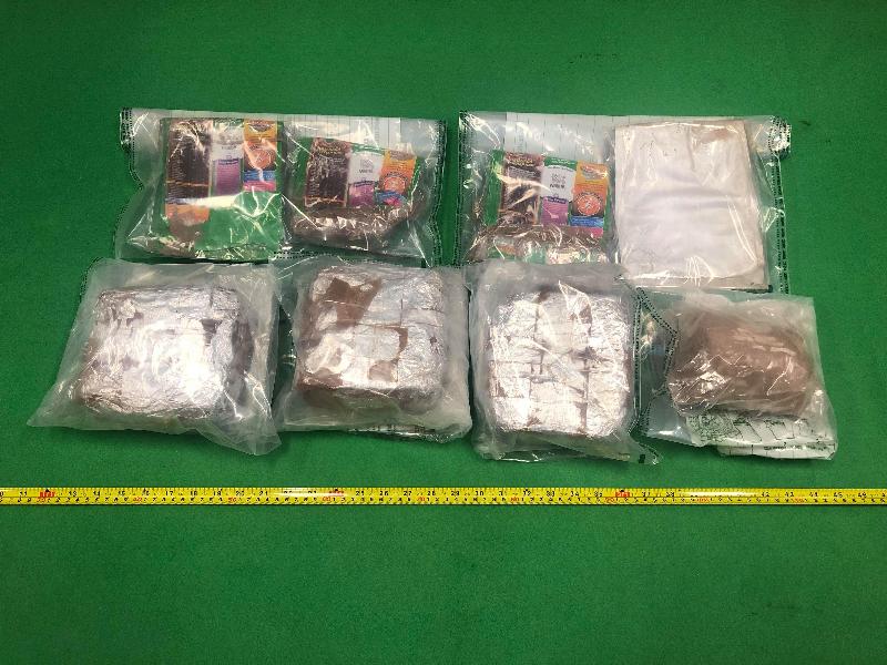 海關人員昨日在落馬洲管制站檢查一件從馬來西亞經深圳到港的速遞快件,發現該批懷疑冰毒及氯胺酮收藏在四包飲品沖劑包裝內。