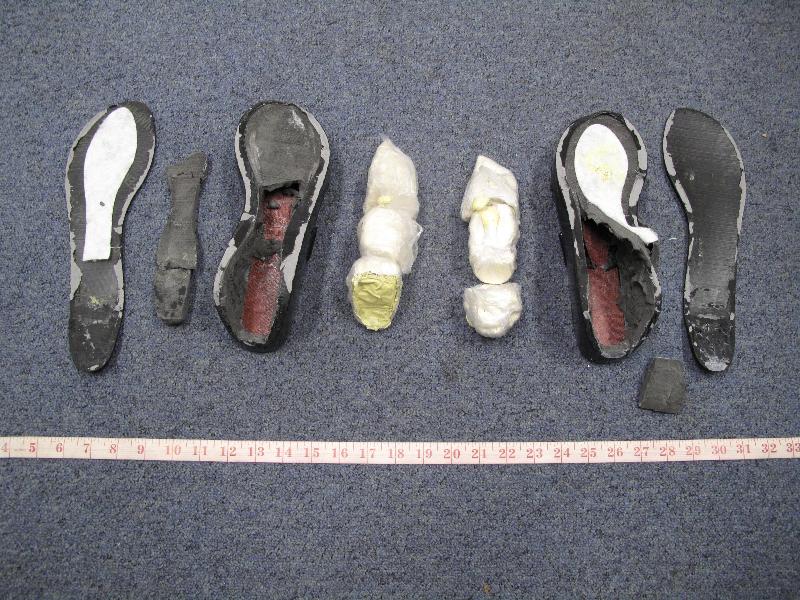 海關人員昨晚在機場入境大堂搜查該名來自菲律賓的女子,在其行李內三對鞋子的暗格中搜出共重約一公斤海洛英。