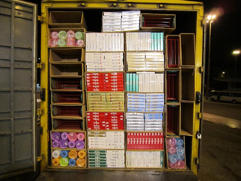 昨日約下午三時,當文錦渡管制站海關人員截查一輛報稱載有「保溫杯」的入境貨車時,發現上述未完稅香煙以鐵架及塑膠廁紙筒作掩飾,收藏於貨斗深處。海關人員即場拘捕該貨車司機。