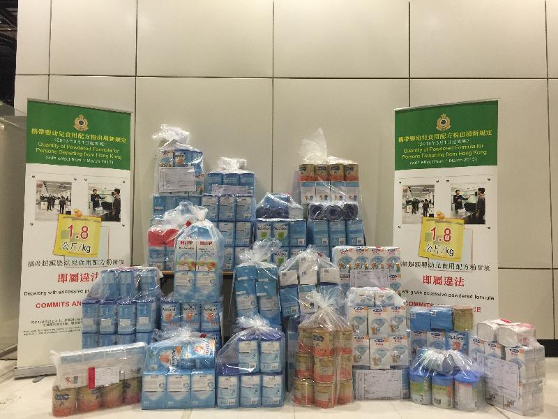 香港海關在去年十二月及本年一月於落馬洲支線管制站展開特別行動,打擊非法出口供36個月以下嬰幼兒食用配方粉(配方粉)的活動。行動中海關共查獲363宗涉嫌違規案件,拘捕187男176女,年齡介乎十五至七十九歲,檢獲的配方粉共約4 120公斤(4 545盒及604罐),總值約145萬。行動中檢獲最多配方粉的單一案件中,涉案的配方粉達37公斤。涉案人士在離境時將配方粉收藏在背囊、手提包、行李內,亦有以舊紙箱、改裝手拉車及嬰兒車充作運載工具。