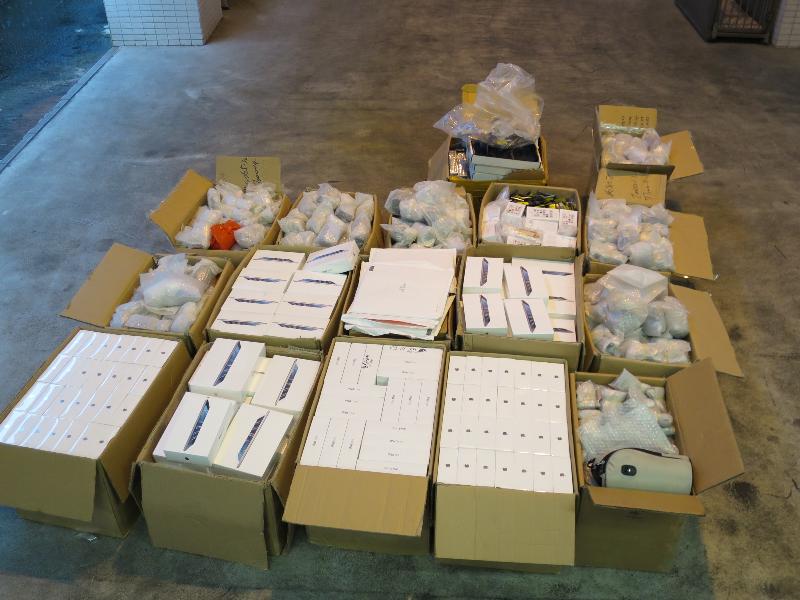 香港海關昨日(八月一日)在落馬洲管制站進行反走私行動,在一輛出境貨車上檢獲三千四百多件總值約五百萬元的懷疑走私電子產品,當中包括智能手機、平板電腦、單鏡反光相機、數碼相機、相機鏡頭、數碼攝錄機及電腦配件。