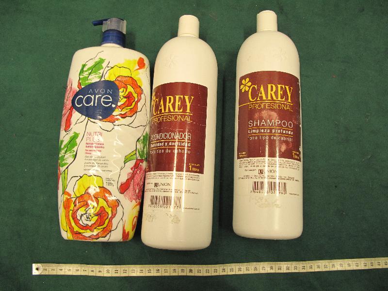 此外,海關人員同日截查另一名從巴西聖保羅,經埃塞俄比亞亞的斯亞貝巴抵港的二十一歲男子,海關人員詳細檢查他攜帶的三樽護髮用品,在樽內檢獲共重約3公斤懷疑液態可卡因,相信販毒份子意圖藉此收藏手法以逃避海關人員的偵查。