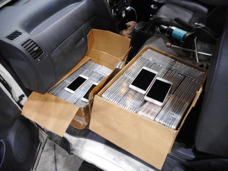 海關人員昨日下午在落馬洲管制站截查一輛出境輕型貨車,在車廂內檢獲一千一百零六部智能電話。