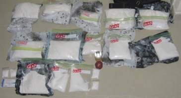 昨晚海關人員在粉嶺清曉路截查一名男子,在其袋內搜獲2.3公斤氯胺酮,其後在該男子家中再搜出6.7公斤氯胺酮。