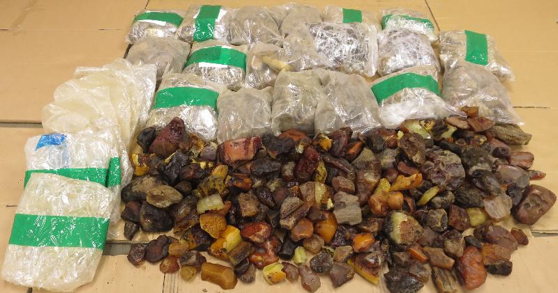香港海關昨日(五月十一日)在深圳灣管制站檢獲約五十公斤懷疑走私琥珀原石,估計市值約一百五十萬元。
