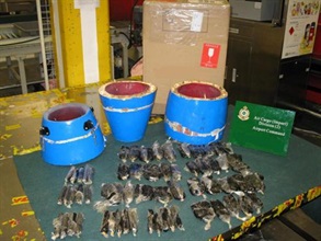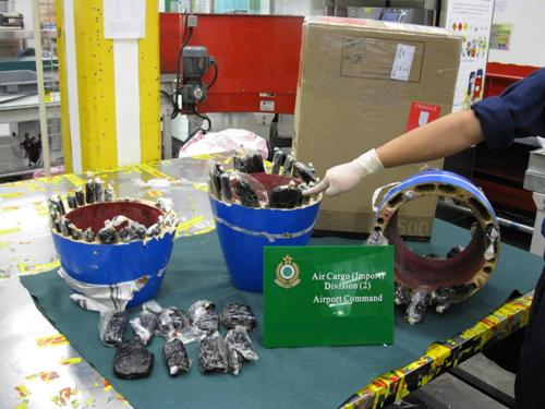 自今年七月,海關在香港國際機場貨運站及速遞中心已先後六次偵破偷運危險藥物到海外或內地的案件,共檢獲總值超過3,630萬元的毒品,其中包括196公斤俗稱K仔的氯胺酮、8.2公斤草本大麻、620克海洛英及45公斤熟鴉片。