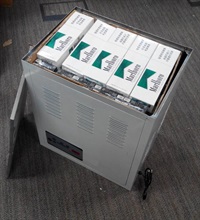 香港海關日前在文錦道管制站搗破一宗懷疑以仿空氣抽濕機收藏私煙的案件,在一輛跨境貨櫃車上檢獲約七十萬支私煙,市值約一百九十萬元,應課稅值約一百三十萬元。行動中,海關拘捕一名五十二歲貨櫃車男司機,並扣查該輛用作走私香煙的貨櫃車。