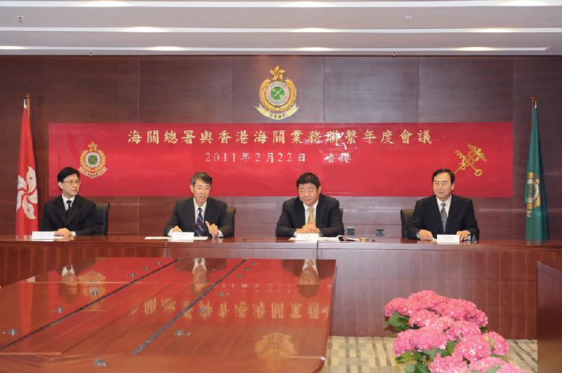 海關總署與香港海關今日(二月二十二日)在香港進行兩地海關業務聯繫年度會議。