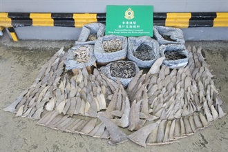 香港海關昨日(七月五日)在葵涌海關大樓驗貨場一個貨櫃內檢獲約一百公斤懷疑受管制屬瀕危物種的乾魚翅及約二百二十公斤未列於艙單的乾海參,估計市值約三十五萬元。
