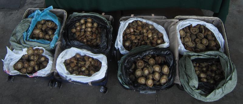 香港海關昨日(八月十三日)在文錦渡管制站檢獲約三百一十六公斤懷疑走私乾鮑魚,估計市值約一百九十萬元。