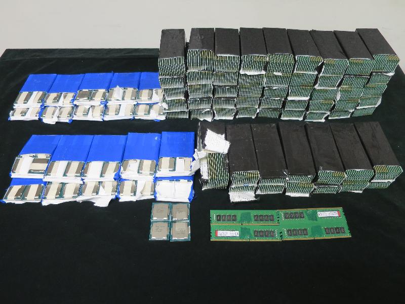 香港海關昨日(九月五日)在深圳灣管制站檢獲八百八十五件懷疑走私電腦記憶體及二百四十件懷疑走私電腦中央處理器,估計市值共約一百五十八萬元。