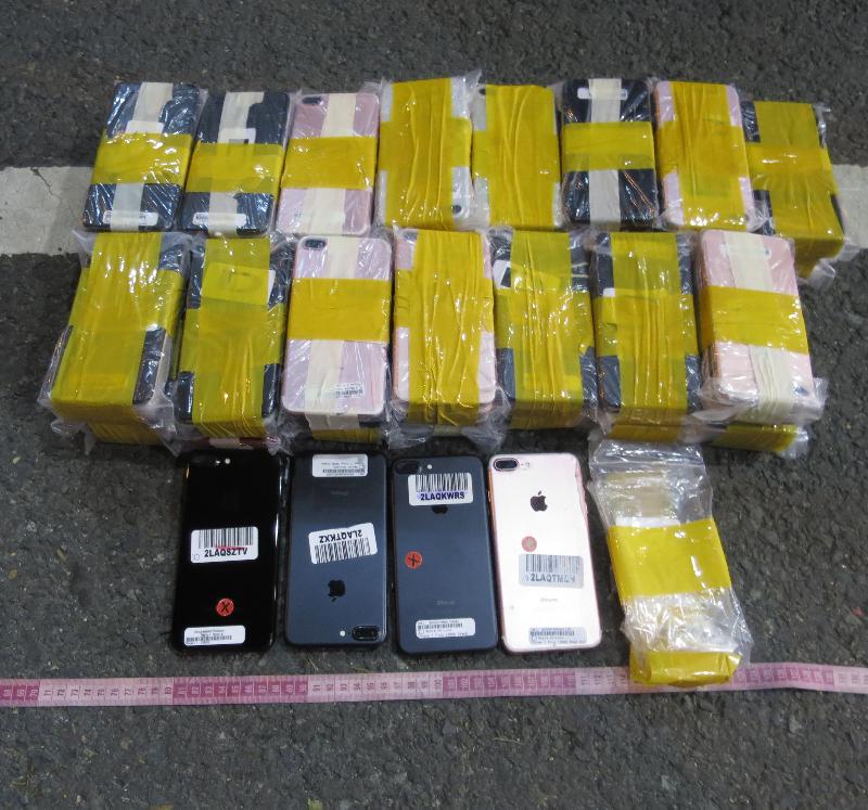 海關人員昨日在深圳灣管制站截查一輛出境私家車,在車上發現該批懷疑走私智能電話及手提電話零件。