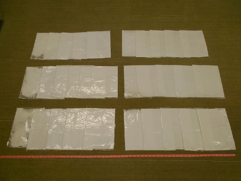 海關人員昨晚在深圳灣管制站截查一輛入境七人私家車時,於車上兩名乘客的背囊及環保袋內,共檢獲約四點三公斤冰毒。