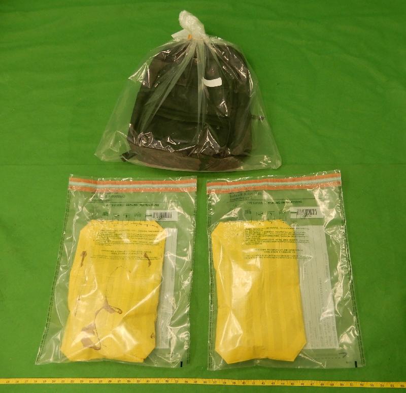 一名男旅客昨日從巴拿馬經荷蘭飛抵本港。海關人員檢查該名旅客的隨身背囊時,發現該批懷疑可卡因收藏在背囊的暗格內,該名六十三歲男子因此被捕。