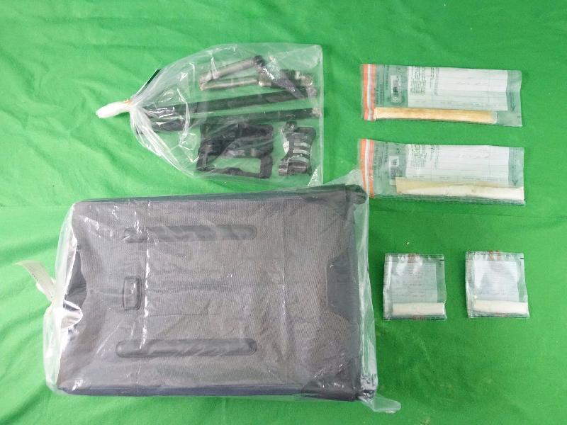 一名男旅客昨日下午從巴西聖保羅經阿拉伯聯合酋長國杜拜飛抵本港。海關人員截查該名準備前往柬埔寨暹粒的旅客。經檢查後,發現該批懷疑可卡因藏於該名旅客所攜帶行李箱的金屬支架內。該名男子因此被捕。