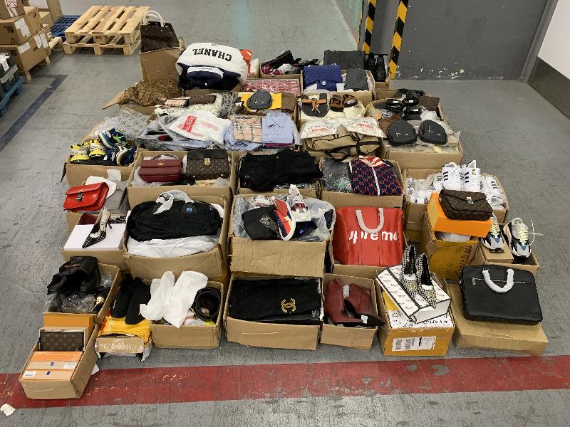 保障知識產權方面,海關偵破十二宗案件,檢獲不同種類侵權物品,估計市值約七十萬元。