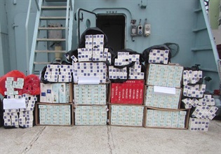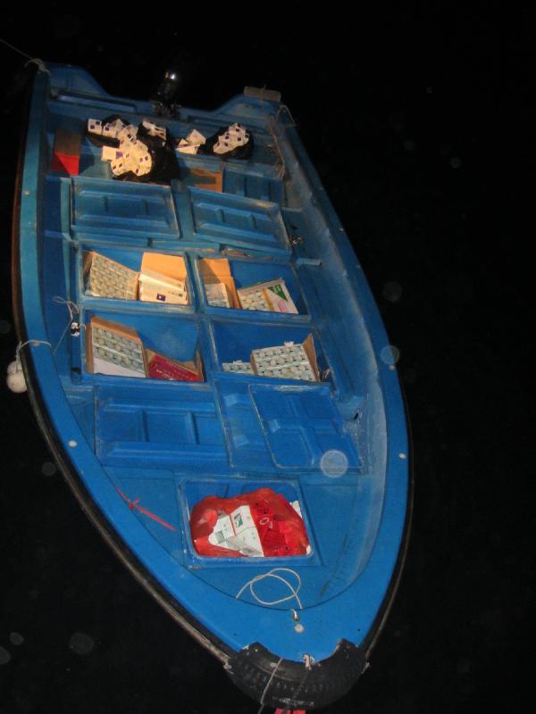 行動中,海關人員於一艘漁船及其拖行的小艇上檢獲十萬支懷疑私煙,市值約二十七萬元,應課稅值約二十萬元。船上一名六十五歲男子及一名五十九歲女子被捕,兩艘船隻被扣查。
