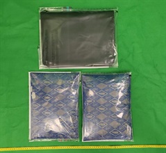 另外,一名六十四歲男旅客今日上午從比利時布魯塞爾飛抵本港。海關人員替該名男子進行清關,在其平板電腦套的夾層內檢獲約一公斤懷疑可卡因,估計市值約一百一十萬元,該名男子因此被拘捕。案件仍在調查中。