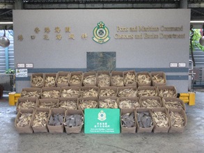 海關人員透過風險評估,揀選及查驗一個從幾內亞抵港的貨櫃,並在貨櫃內發現該批懷疑受管制的藍吻犁頭鰩屬乾魚翅及乾魚翅。