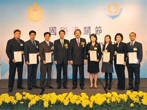 在今日的慶祝酒會上,十名香港海關人員獲曾俊華頒發世界海關組織嘉許證書,以表揚他們在保護環境的工作上,如在「補天行動」計劃、阻截危險廢物及瀕臨絕種生物、以及有效推行電子貨物艙單系統等方面,表現卓越。