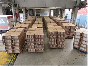 海關人員透過海外情報交流及風險評估,檢查兩個從阿拉伯聯合酋長國抵港報稱載有家具的四十呎貨櫃。在檢查行動中,海關人員於兩個四十呎貨櫃內發現共約一千九百萬支懷疑私煙,市值約五千二百萬元,應課稅值約三千六百萬元。海關人員已扣查該批沒有列於載貨艙單上的香煙。