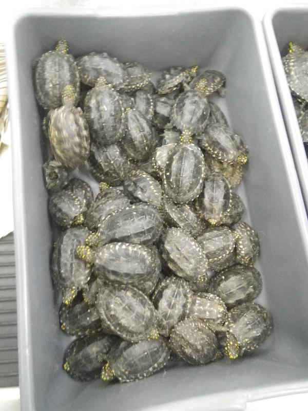 香港海關今日(十月二日)在香港國際機場緝獲一百六十七隻懷疑瀕危物種黑池,市值約二十八萬元,並拘捕一名二十一歲的抵港男旅客。