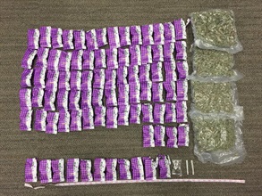 海關毒品調查科人員昨日下午在屯門截查一名男子,在其肩袋內發現零點一七公斤懷疑大麻花,分別藏於十一個密封的茶葉袋及一個塑膠袋。海關人員稍後搜查該男子在附近的住所,再檢獲二點一八公斤懷疑大麻花及一批懷疑用作包裝毒品的工具。