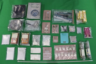 海關人員其後押解該名被捕男子到附近一個住宅單位進行搜查,發現該處為一個製毒工場,並在工場內檢獲約一點四五公斤懷疑液態可卡因、約一點一公斤懷疑可卡因、約三百克懷疑霹靂可卡因,以及一批製毒及包裝工具,單位內一名三十二歲男子亦被拘捕。