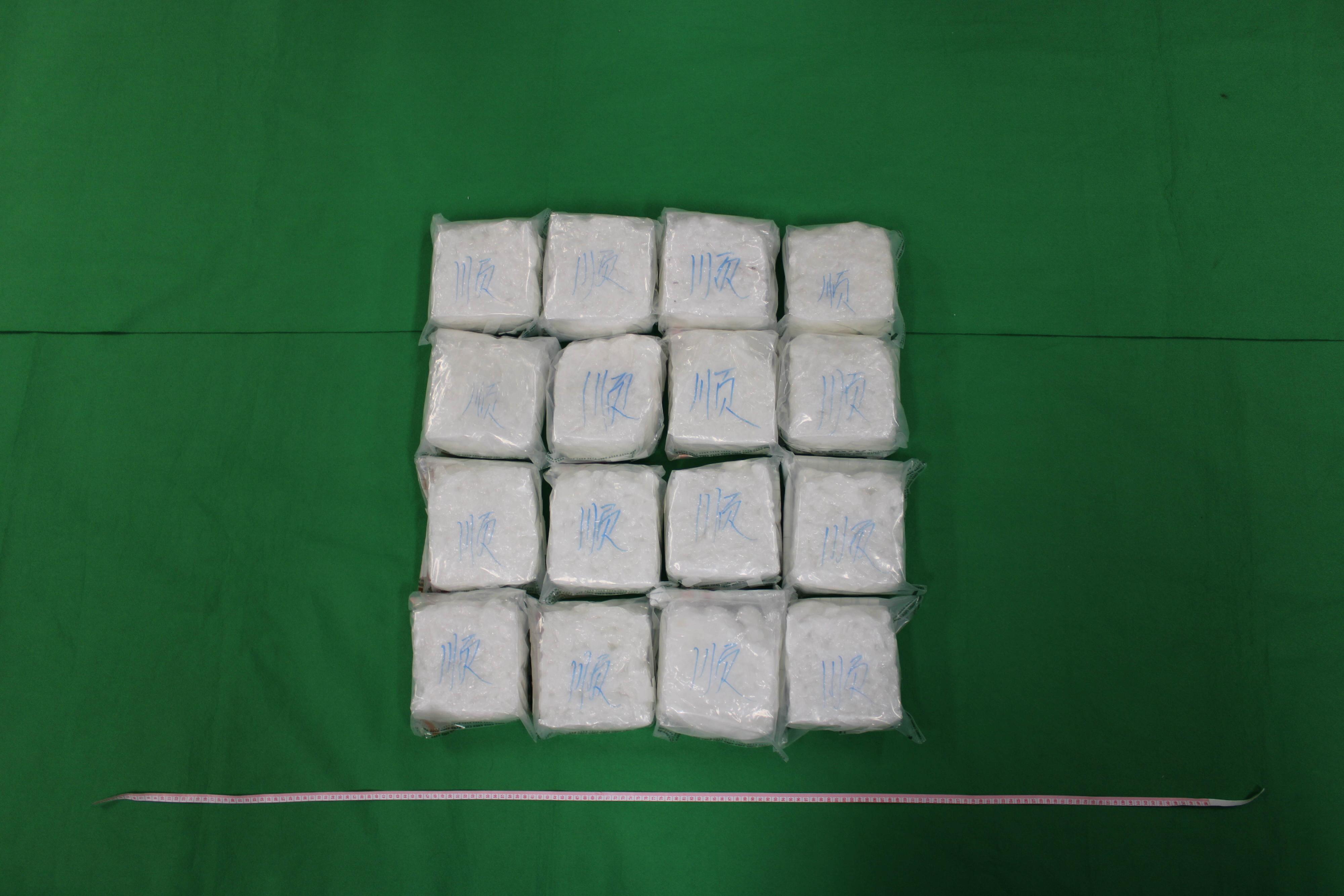 香港海關昨日(七月二十六日)在大埔檢獲約十七公斤懷疑冰毒,估計市值約七百八十萬元,並拘捕一名男子。